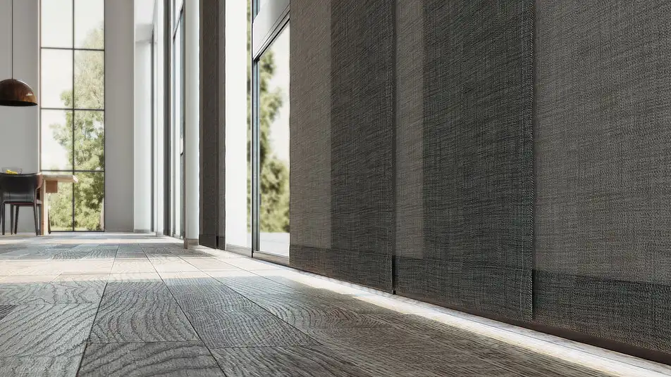 Flächenvorhänge setzen moderne, ruhige Akzente an grossen Fensterfronten und lassen sich zugleich als elegante Raumteiler einsetzen. Die verschiebbaren Paneele laufen in Schienen, überlappen sauber und steuern Licht, Sichtschutz und Atmosphäre im Handumdrehen.